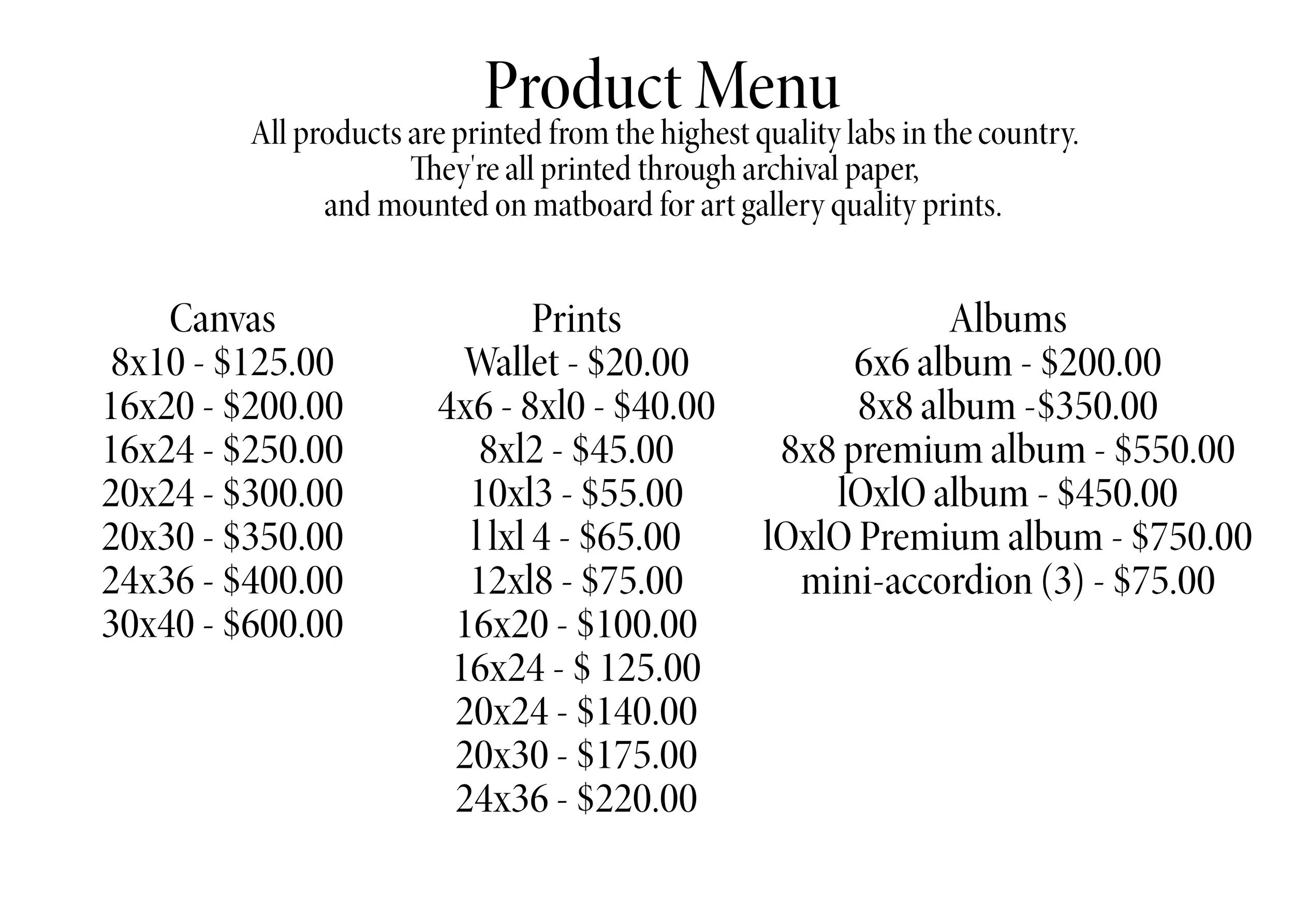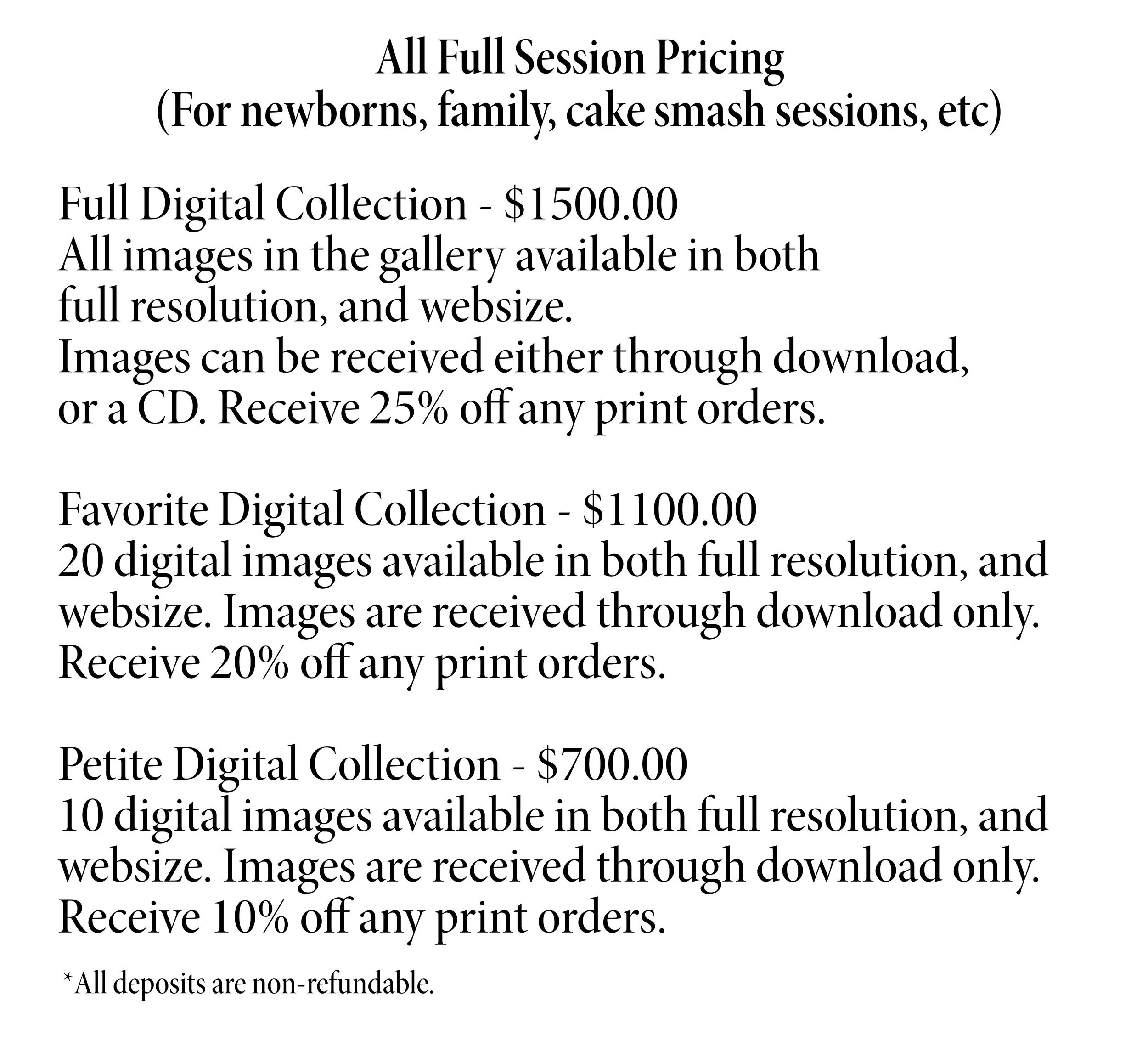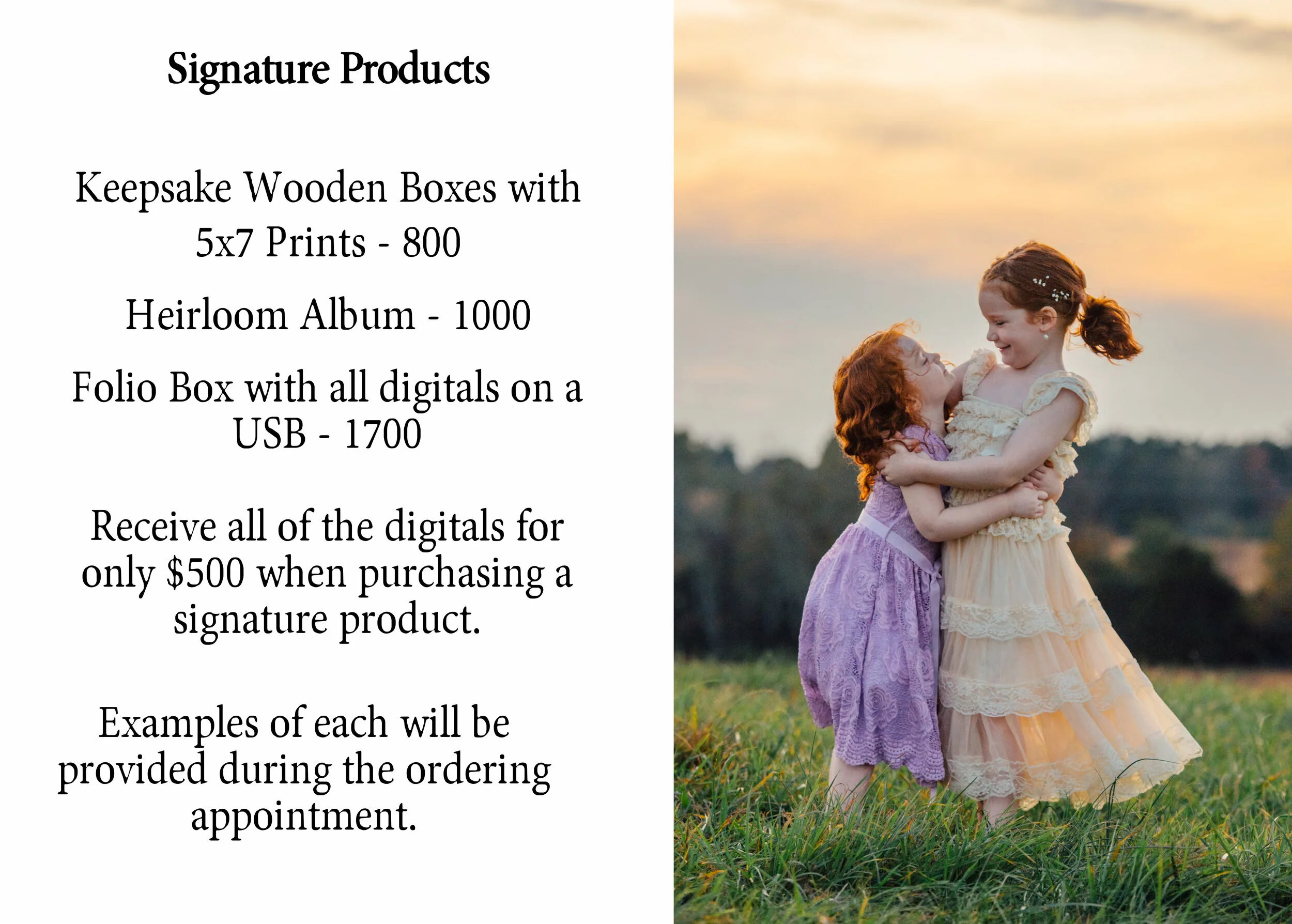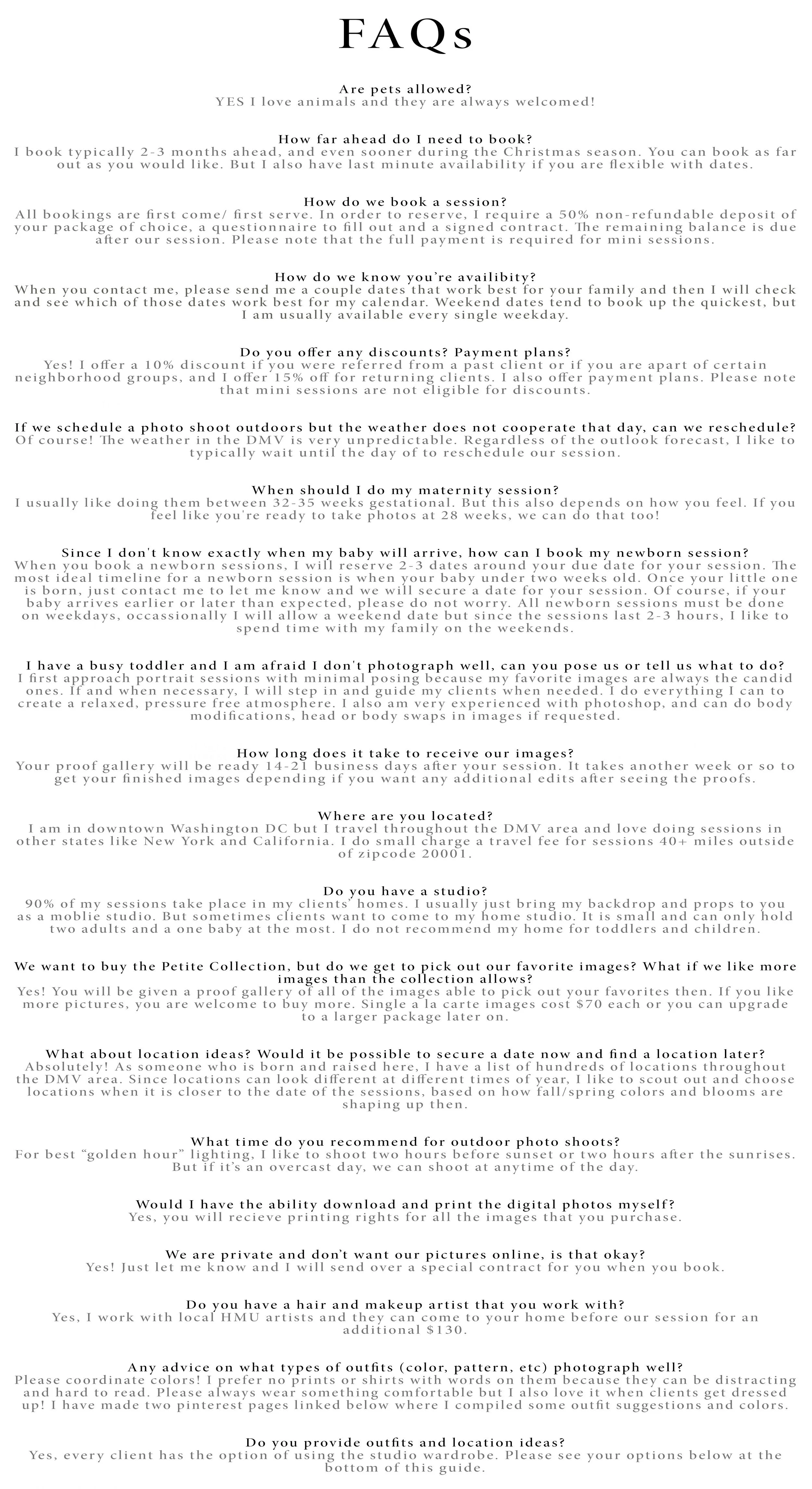 2023 Price Guide See our client wardrobe closet here: Studio Wardrobe Click these links for outfit Inspiration for Fall Shoots and Spring Shoots.